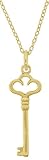 [if A whimsical look to embellish your wardrobe, the Yellow Gold Overlay Sterling Silver Medium Triple Flower Top-Key Pendant unlocks your style with an old-fashioned skeleton key. Made from polished sterling silver and plated in elegant yellow gold, the key is 1.27 inches long for a bold look. It features a cut-out bow in the shape of an abstract fleur-de-lis. The pendant hangs from a hip 18-inch rolo chain for that sweet-meets-urban style. It's secured with a spring-ring clasp for added safety. This key pendant will unlock the secrets to an effortless look, as it's easy to accessorize with practically anything in your closet.]